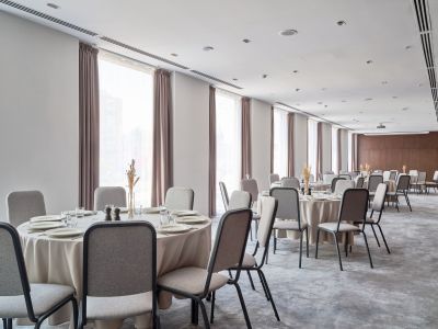 Двухуровневый зал URBAN с высокими потолками и панорамными окнами