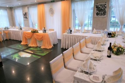 В зале есть Wi-Fi и TV-экраны. Если вы хотите добавить в свой праздник изыска, здесь вам предложат услуги живого исполнения, диджея, фотографа и видеографа.