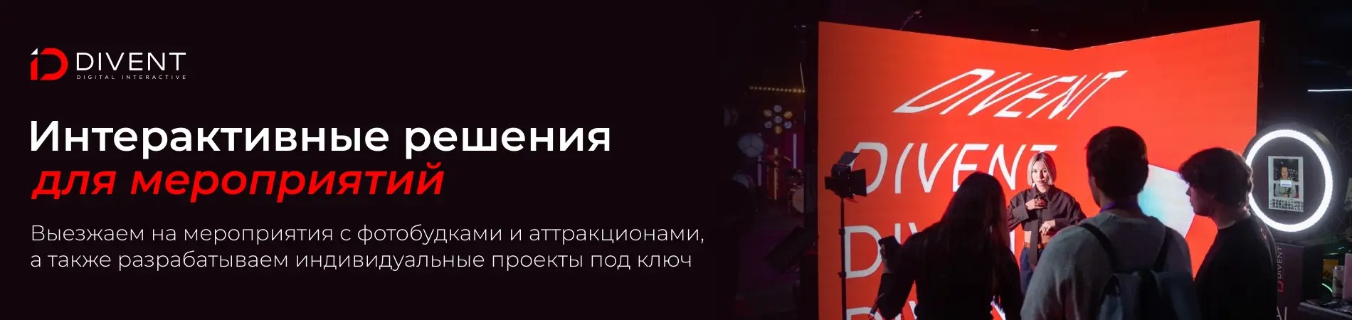Divent — это команда, которая создаёт интерактивные форматы для событий любого масштаба под ключ: от камерных корпоративов до крупных бренд-ивентов, выставок и фестивалей.