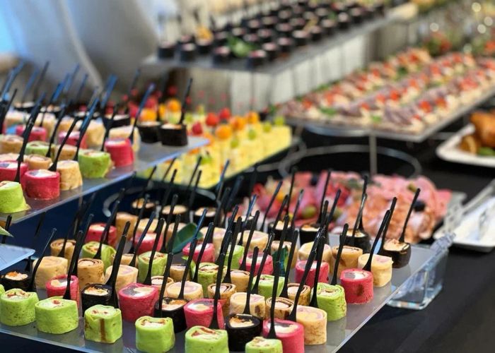 Если вам предстоит семейный или официальный праздник и обычной доставки блюд из интернет-магазина вам недостаточно, обратитесь в компанию Muscat Catering. Мы предлагаем заказать еду для фуршета с ресторанным обслуживанием в Москве и Подмосковье. К назначенному времени мы привезем на ваш праздник горячие блюда, закуски, десерты и напитки, сервируем столы и организуем подачу для гостей. Заказ еды в службе кейтеринга Muscat Catering ― это: Царский выбор блюд. Мы привезем на ваш праздник горячие и холодные закуски, канапе, мини-шашлычки, роллы, а также десерты и свежую выпечку. Состав праздничного меню можно обсудить с менеджером. Оперативность. Мы предлагаем готовые фуршеты с доставкой по столице и области в день звонка. Если повод для праздника появился неожиданно, вы сможете воспользоваться нашими услугами в любой момент. Доступность. Мы предлагаем минимально возможные цены на все виды блюд, но при этом не экономим на качестве продуктов. В «Личном кабинете» на сайте действует накопительная система баллов.