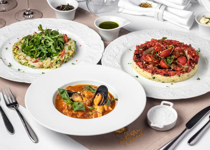 В меню ресторана вы найдете утку по-пекински, свинину по-сычуаньски, шанхайский суп с морепродуктами и различные дим-самы.