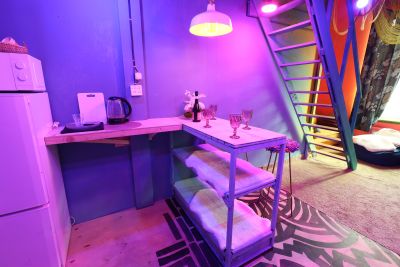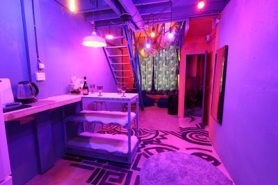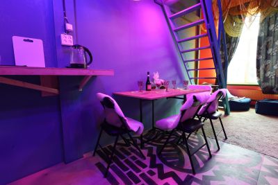 Светлый лофт Purple с диско-шаром, высокими потолками и караоке!