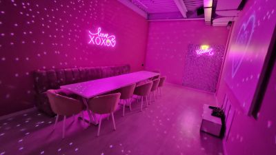 Зал Лофт - классический стиль с неоновой подсветкой и арт-объектами