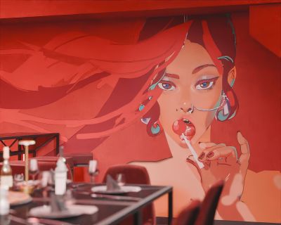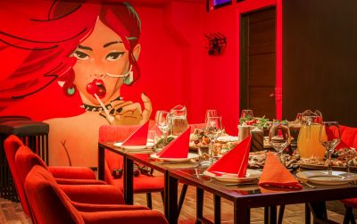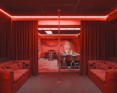Вайбс лофт, зал Холидей - лофт в красных оттенках с фотозоной и громкой музыкой!