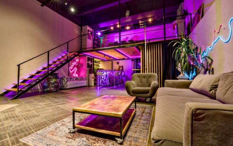 Двухэтажный лофт-студия Neon Space Loft с большими окнами и неоном на Савеловской