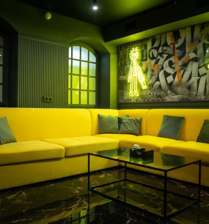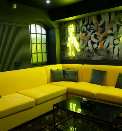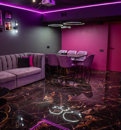 Уютный красочный лофт ESTETIKA с караоке и неоновым освещением