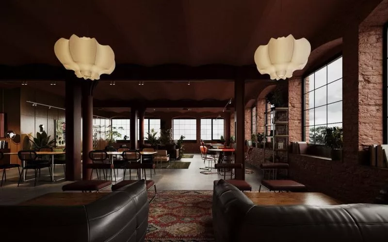 Огромный двухуровневый зал URBAN с высокими потолками и панорамными окнами №3403