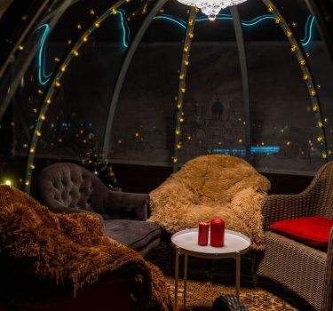 Новогодние иглу Джакузня для мероприятий на панорамной крыше с видом на Москву