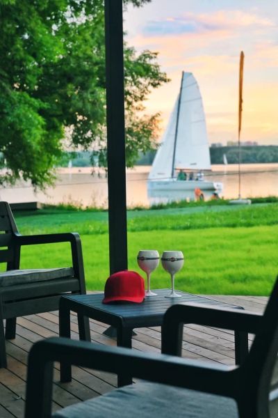Терраса у воды на территории серфстанции Pro-veter в Строгино