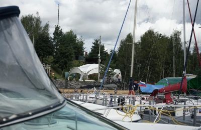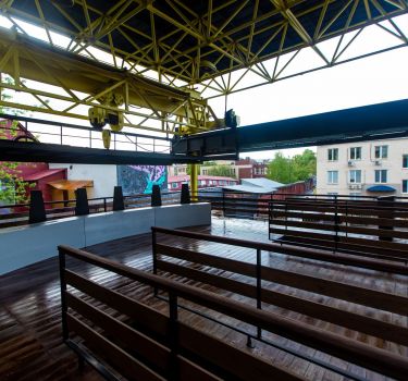 Большая летняя терраса у воды в серфстанции Pro-veter в Строгино