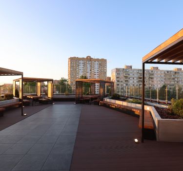 Большая летняя терраса 600 м2 на крыше коворкинга в Реутове