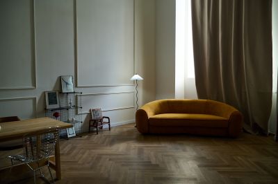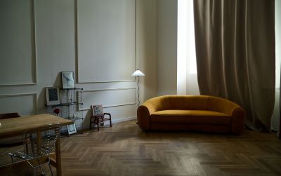 Стильный зал Филикуди в стиле мастерской художника-скульптора в Марьиной Роще