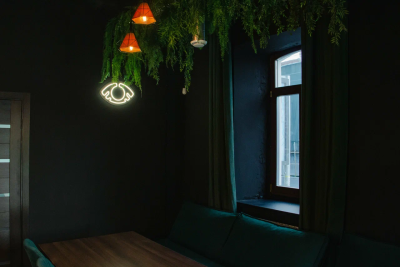 Зал MONO с арочным окном и живыми растениями на Преображенке