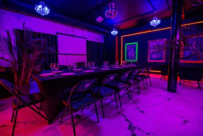 Swan Loft - лофт в темном стиле с дизайнерской разноцветной подсветкой на Бауманской