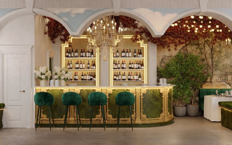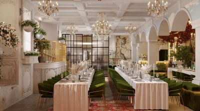 Стильный банкетный зал и ресторан Eterno на территории БЦ Верейская Плаза