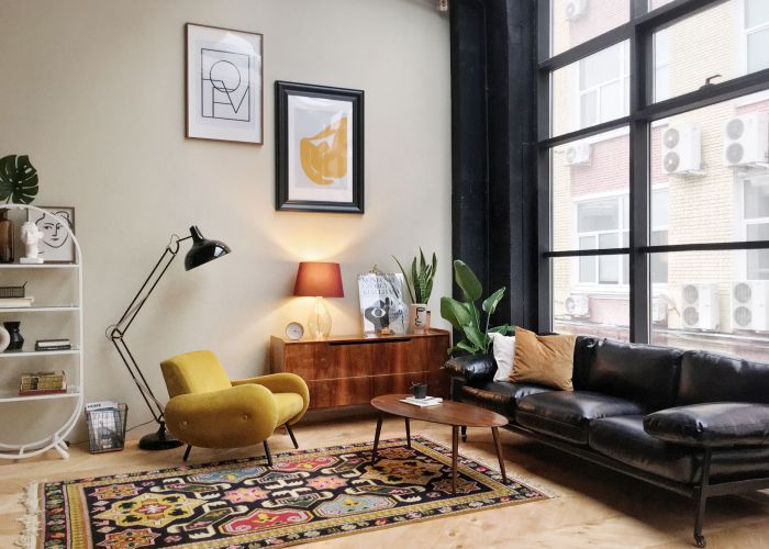 Стильный зал Филикуди в стиле мастерской художника-скульптора в Марьиной Роще