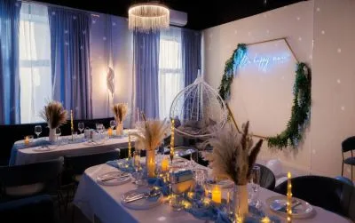 Зал Лофт - классический стиль с неоновой подсветкой и арт-объектами