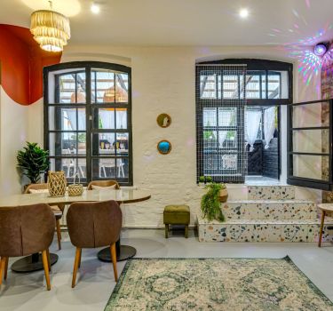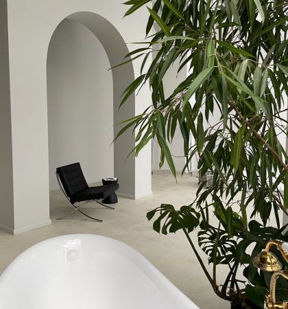 Зал MONO с арочным окном и живыми растениями на Преображенке