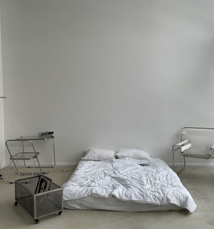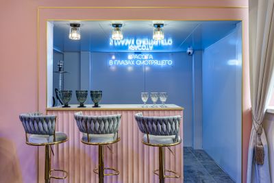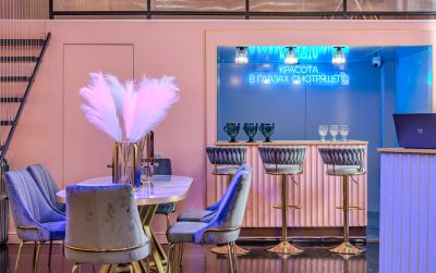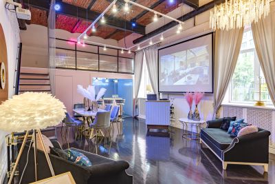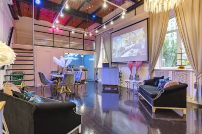 Лофт Роза - высокий стиль зала в нежных тонах с антресолью у м. Курская