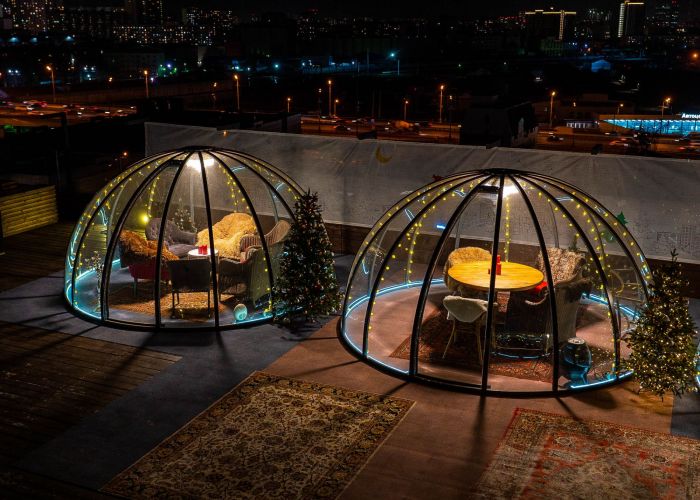 Сказочные иглу Джакузня на крыше для частных ужинов и банкетов с видом на Москву