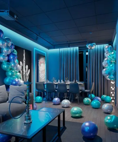 Светлый лофт Happy - зал с неоном, фотозоной, караоке и проектором