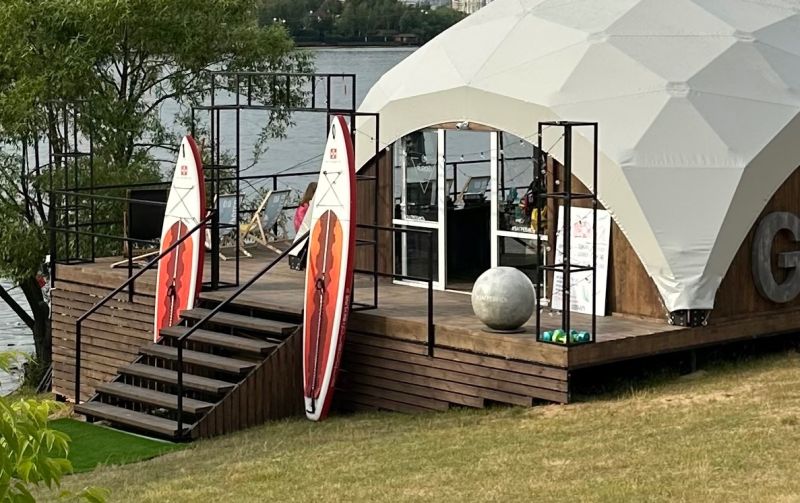 Летняя терраса и шатер в клубе сапсерфинга на Москве-реке