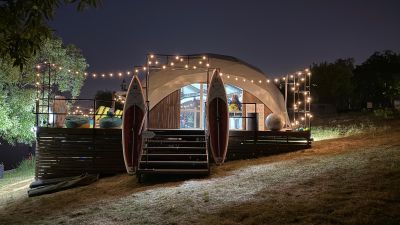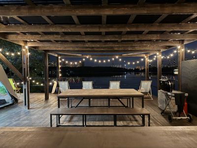 Летняя терраса и шатер в клубе сапсерфинга на Москве-реке
