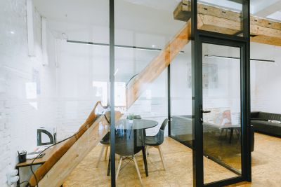 Двухуровневое арт-пространство Room 404 с панорамными окнами, дизайнерский лофт
