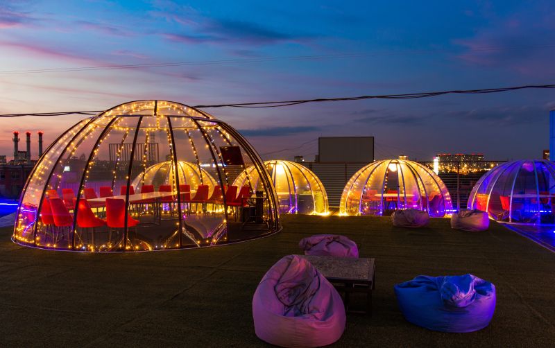 Сказочные иглу Джакузня на крыше для частных ужинов и банкетов с видом на Москву