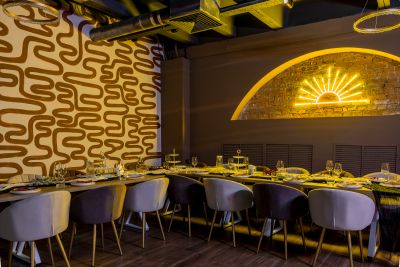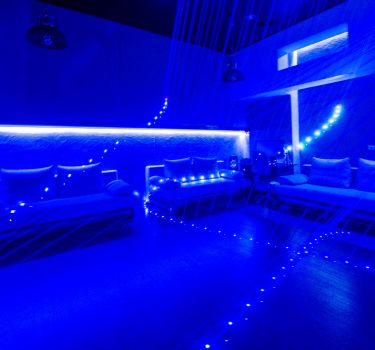 Тусовочный лофт Golden в темных тонах с диско-шаром