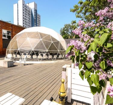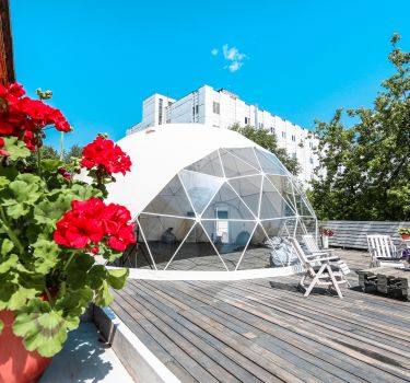 Стильная приватная крыша-веранда ROOF со сферическим полупрозрачным шатром