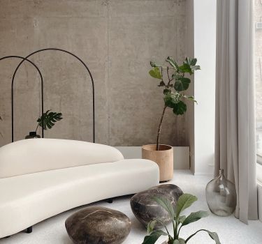 Зал MONO с арочным окном и живыми растениями на Преображенке