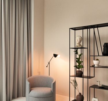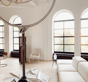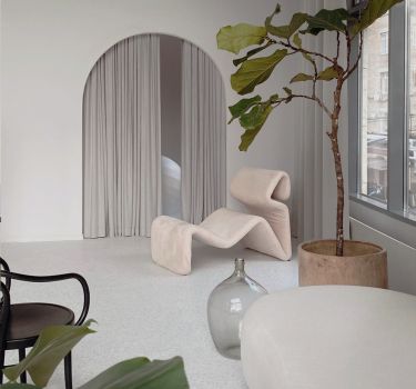 Светлый Зал MUSE с большим окном и дизайнерской мебелью (как из Пинтерест)