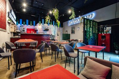 Уютный бар-кафе Достоевский в стиле лофт на Нагатинской набережной