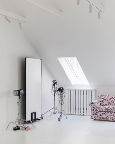 Mark IV Зал Blink - белоснежная студия с циклорамой, 3 мансардными и 2 арочными окнами