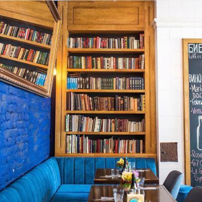 Уютный ресторан Библиотека с книжными полками