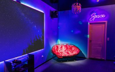 Тёмная лофт-комната в космическом стиле
