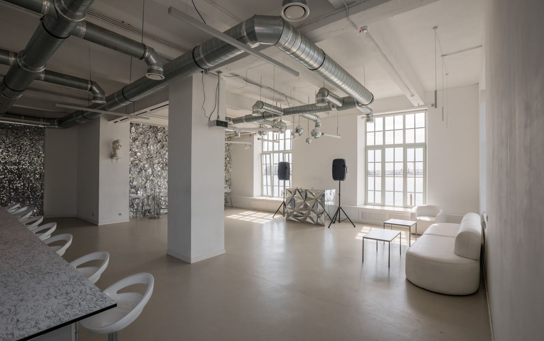 Элегантный и в то же время футуристичный зал с мягкой космической атмосферой. Блеск металла, необычные формы и яркий эмоциональный неон делают его идеальным местом для масштабных фантастических вечеринок — как будто вы попали в будущее!