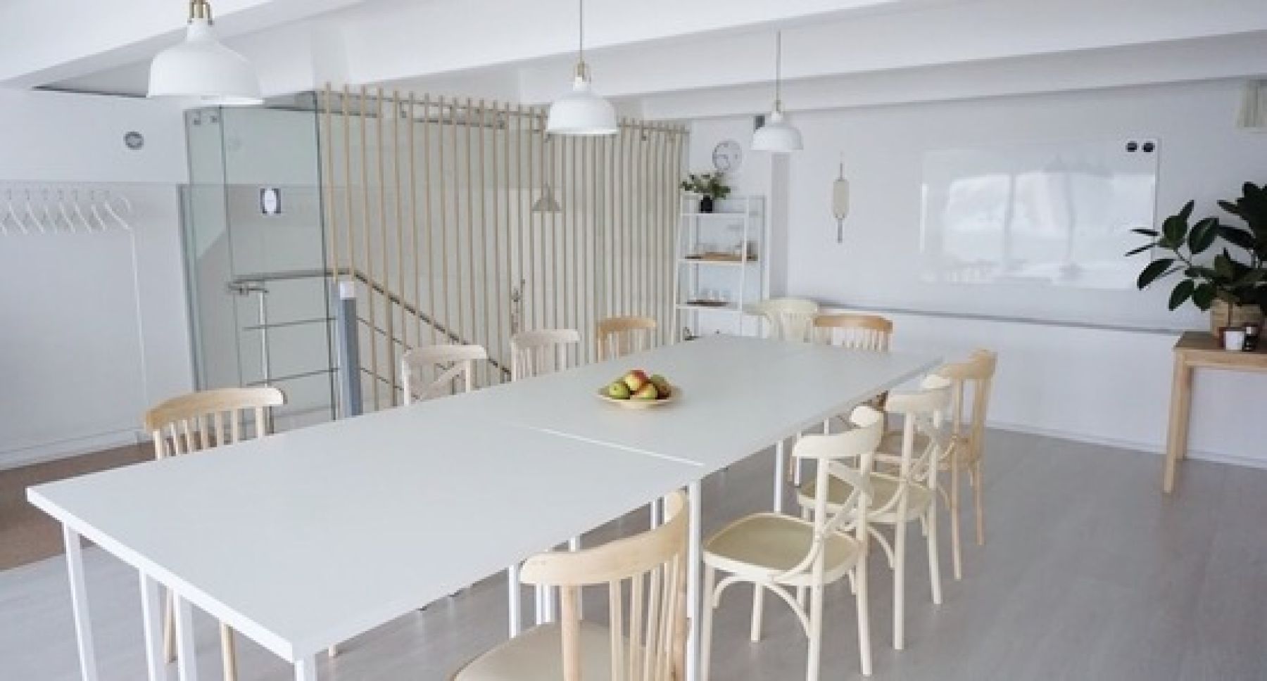 Это один из 3 залов в нашей студии. Студия двухъярусная с лестницей на второй ярус/этаж. Этот зал расположен на втором ярусе, одна стена застеклена, можно видеть, что происходит внизу на первом ярусе. Так как стена стеклянная, звукоизоляция не полная. Если у вас групповое рабочее занятие, то это вам не помешает, у нас проходят только спокойные мероприятия, шумные - принципиально не берем, чтобы всем гостям было комфортно. Если у вас присутствуют медитативные практики и нужна полная тишина, выберите другой зал в нашей студии - отправьте заявку, мы поможем подобрать зал. У нас постоянно проходят мастер-классы и курсы в этом зале, все гости довольны. Можно арендовать проектор. Бесплатная маркерная доска с маркерами.