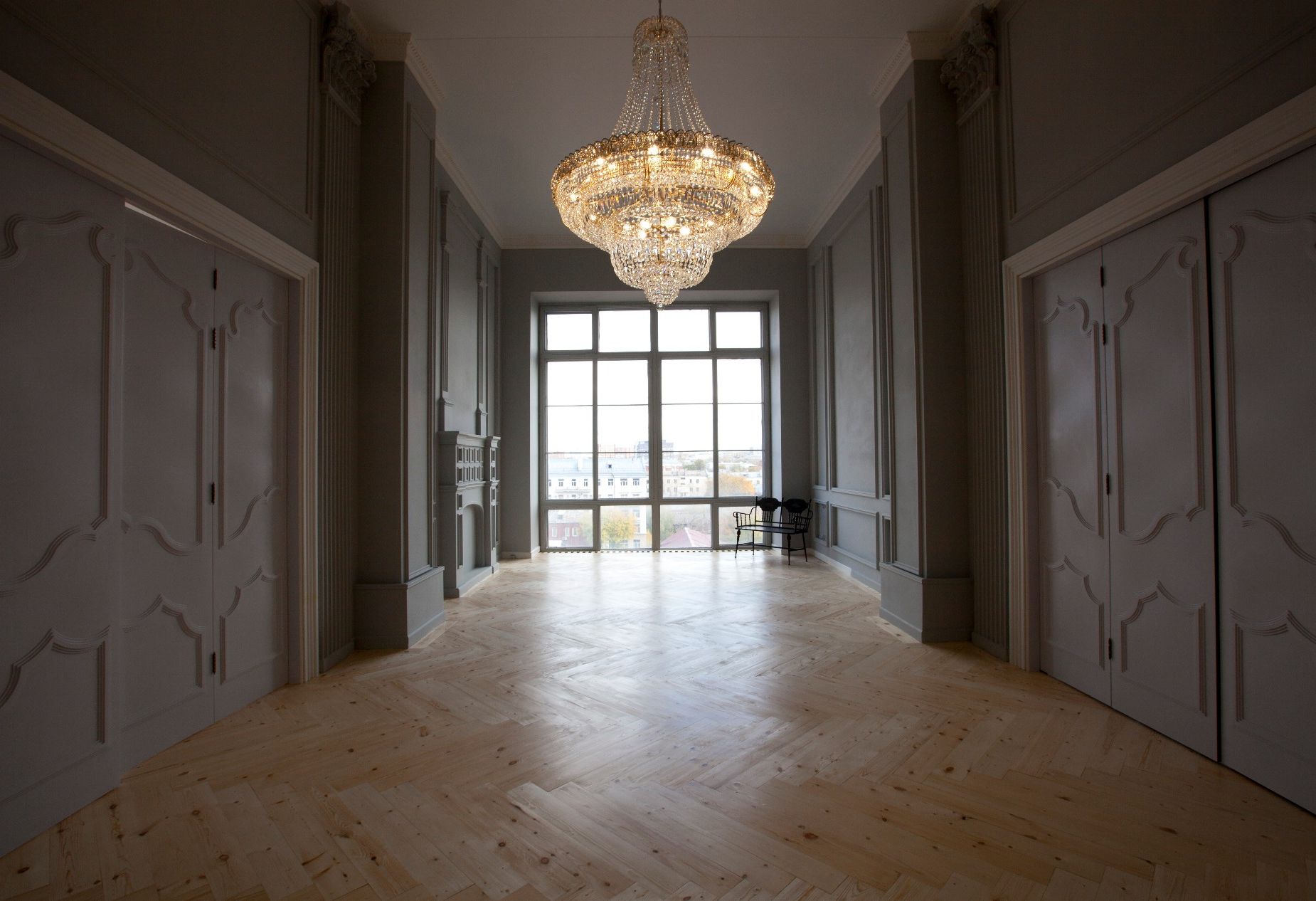 Лаконичный серый дворцовый лофт на электрозаводе