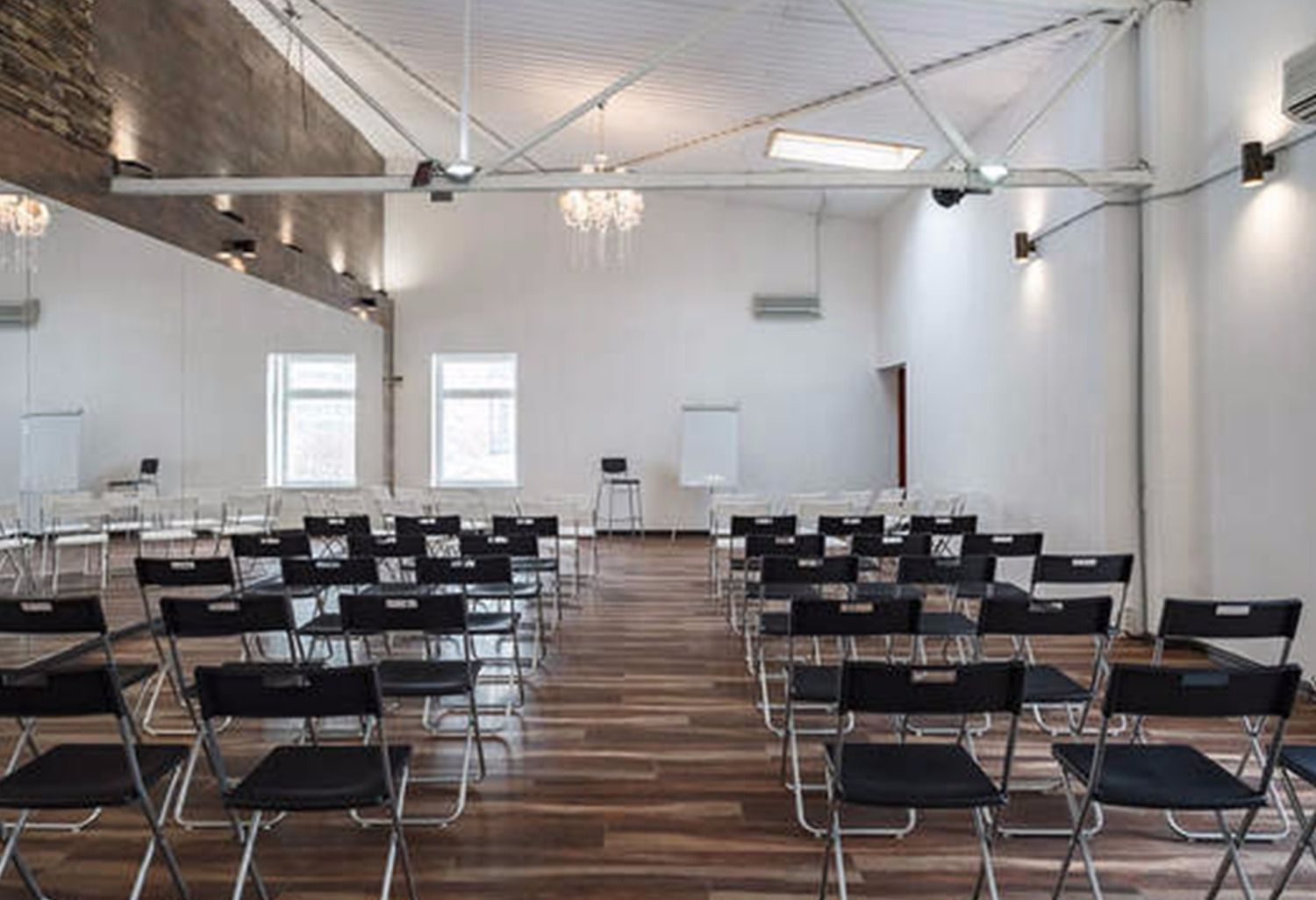 Светлый зал с большими окнами идеально подходит как для тренинга, семинара или презентации, так и для проведения Дней Рождений, тимбилдинга, корпоративов, кастингов, дефиле и фотосессий.