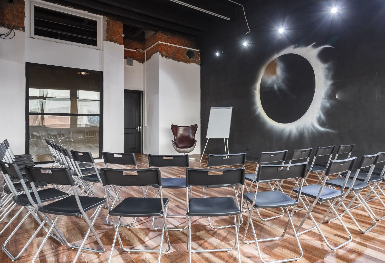 Зал с красивым оформлением позволит вам по-новому взглянуть на выбор площадки для танцев, семинаров, тренингов, мастер-классов или конференций. Площадка оборудована современным музыкальным центром, климат-контролем и идеальным полом из качественного ламината.