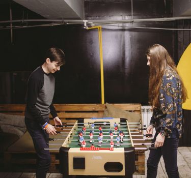Зал "Авангард", расположенный на втором уровне уютного лофта, отличается смелым дизайном, яркими цветами и интересными деталями. Зал представляет собой многофункциональное пространство, которое подойдет и для семейного праздника, и для небольшого корпоратива, и для шумной вечеринки с караоке или игрой в "Мафию", и для деловой встречи, и для киноночи с любимым человеком. Здесь есть всё для вашего удобства: столы, уютные диванчики, плазма, качественный звук, коктейльные столики и мягкие подушки. При необходимости можно воспользоваться услугами нашего бара и кальянной, а также заказать кейтеринг или отведать блюда из меню от нашего шеф-повара.
