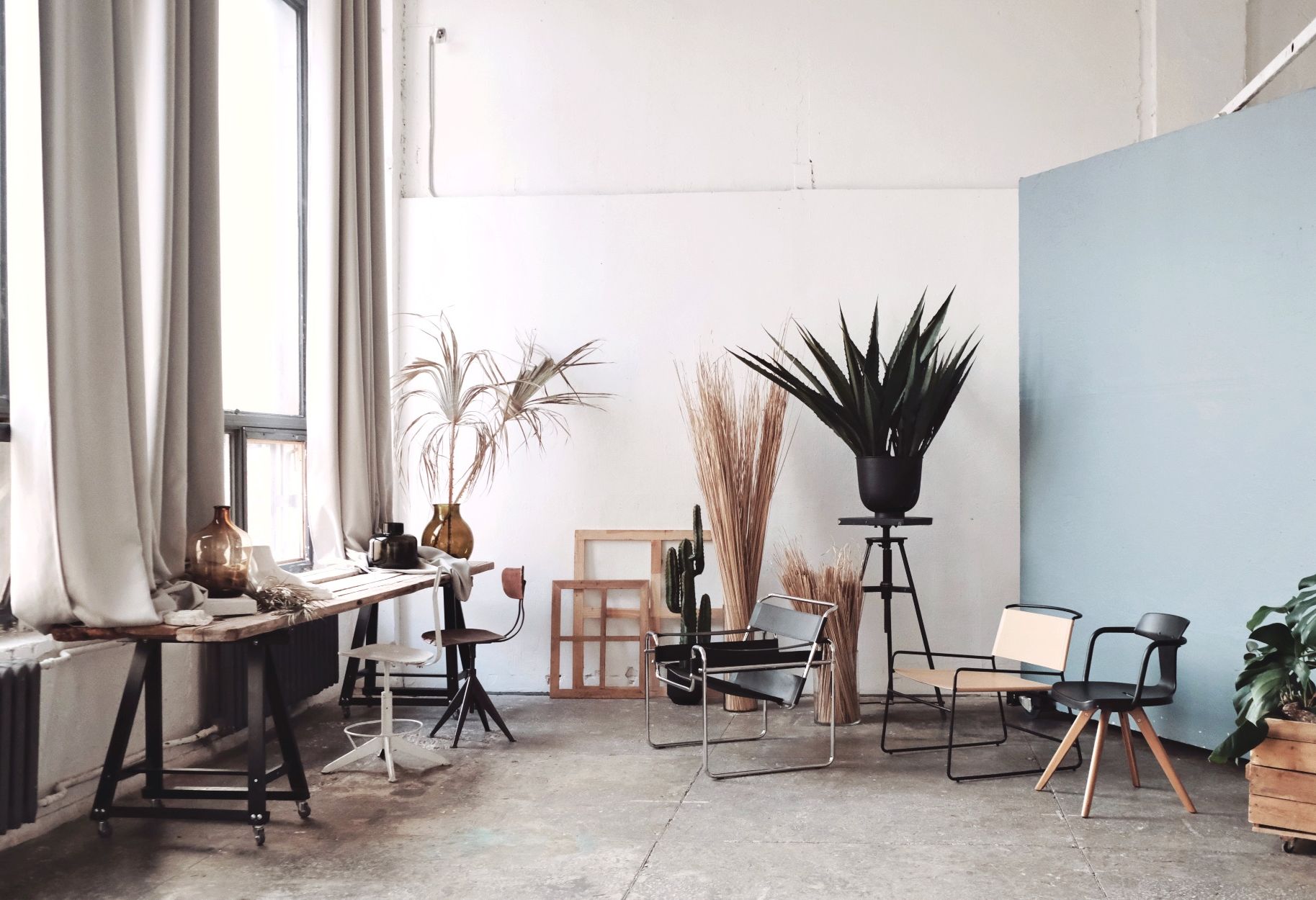 Пространство 100 кв метров, высота потолков 7,5 м, 4 больших окна, серые блэкаут шторы.*