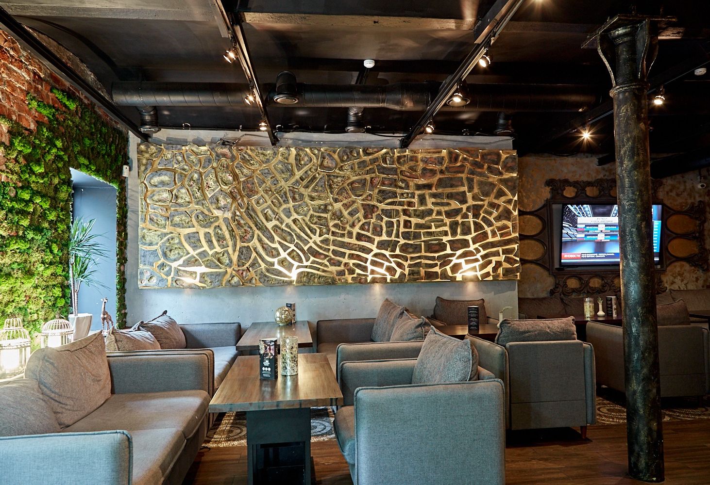 Большое количество дизайнерских решений собранно в одном заведении.