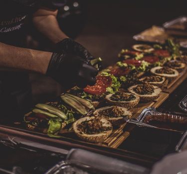 Вам не надо думать где, как и сколько заказывать еды, ведь наша кухня может приготовить очень вкусный фуршет ресторанного качества по доступной цене (закуски, салаты, гарниры и горячее). Напитки и алкоголь можно приносить в любом количестве без каких-либо пробковых сборов.