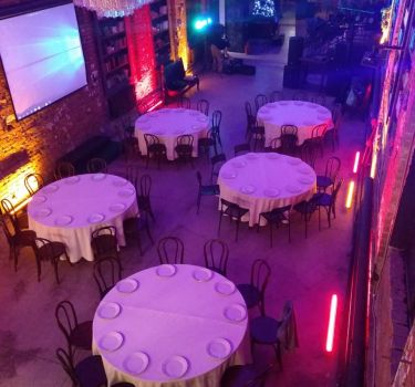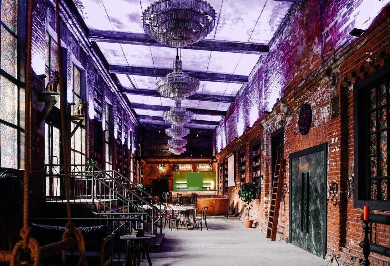 Десятиметровые потолки, старинные деревянные скамьи, огромные хрустальные люстры, витражные окна, книжные полки во всю высоту – магическая атмосфера зала соткана из тщательно выверенных деталей. Площадь – 270 м2. Многофункциональный лофт идеален для свадеб, конференций, вечеринок, съемок.