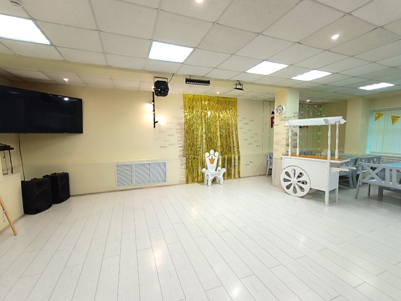 Пространство с кухней, детской зоной и большим залом. Отличное место для семейного отдыха с игровой для детей. Здесь Вы можете организовать не только мероприятия для отдыха с детьми, но и при желании игровая комната превратится в танцпол и провести сугубо взрослое мероприятие.