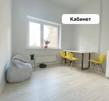 Это стильный дизайн, большое количество света, высота потолков пять метров, камин, балкончик.