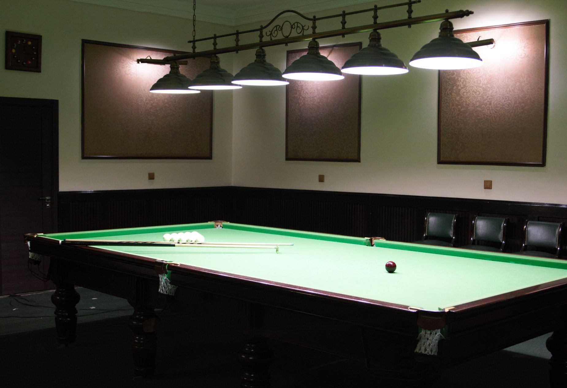 В зале видеться видео наблюдения за бильярдным столом